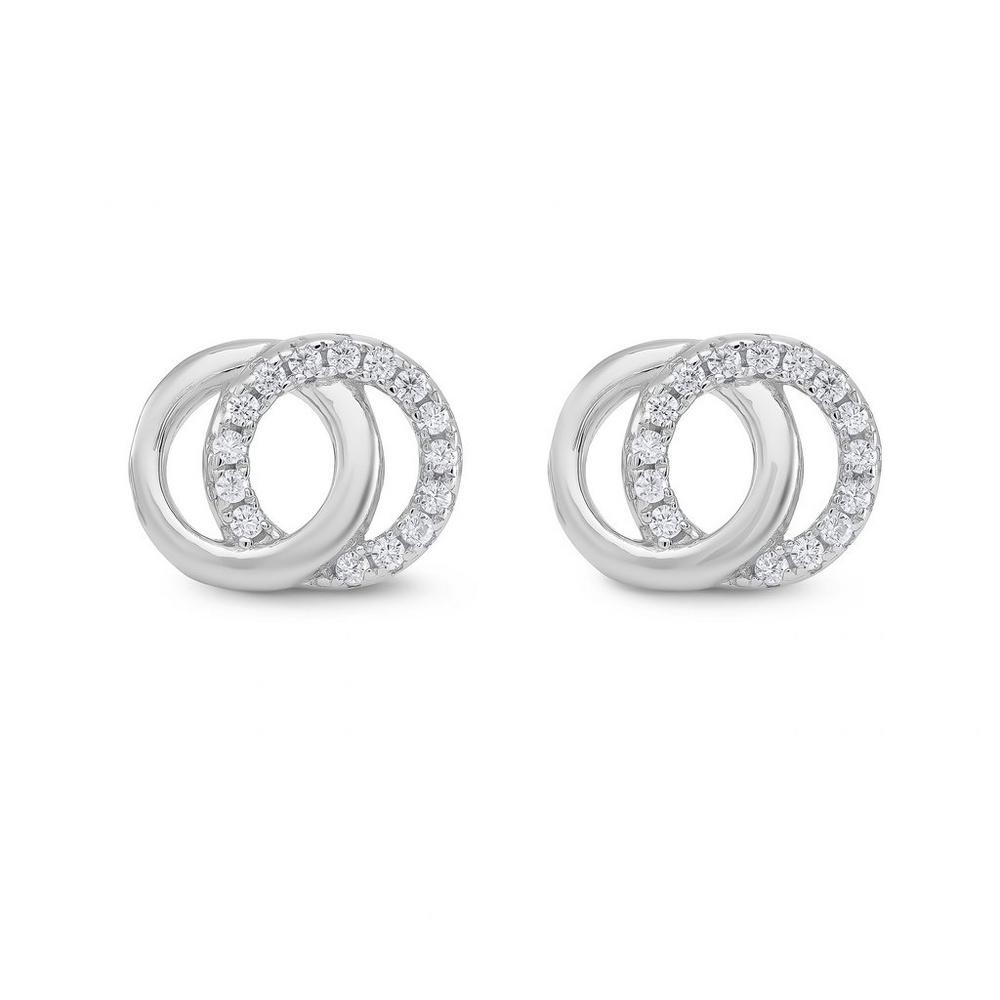 Two circles beautifully layered together and embellished with dazzling cubic zirconia crystals, these Silver Cubic Zirconia Double Circle Stud Earrings are sure to be admired by all