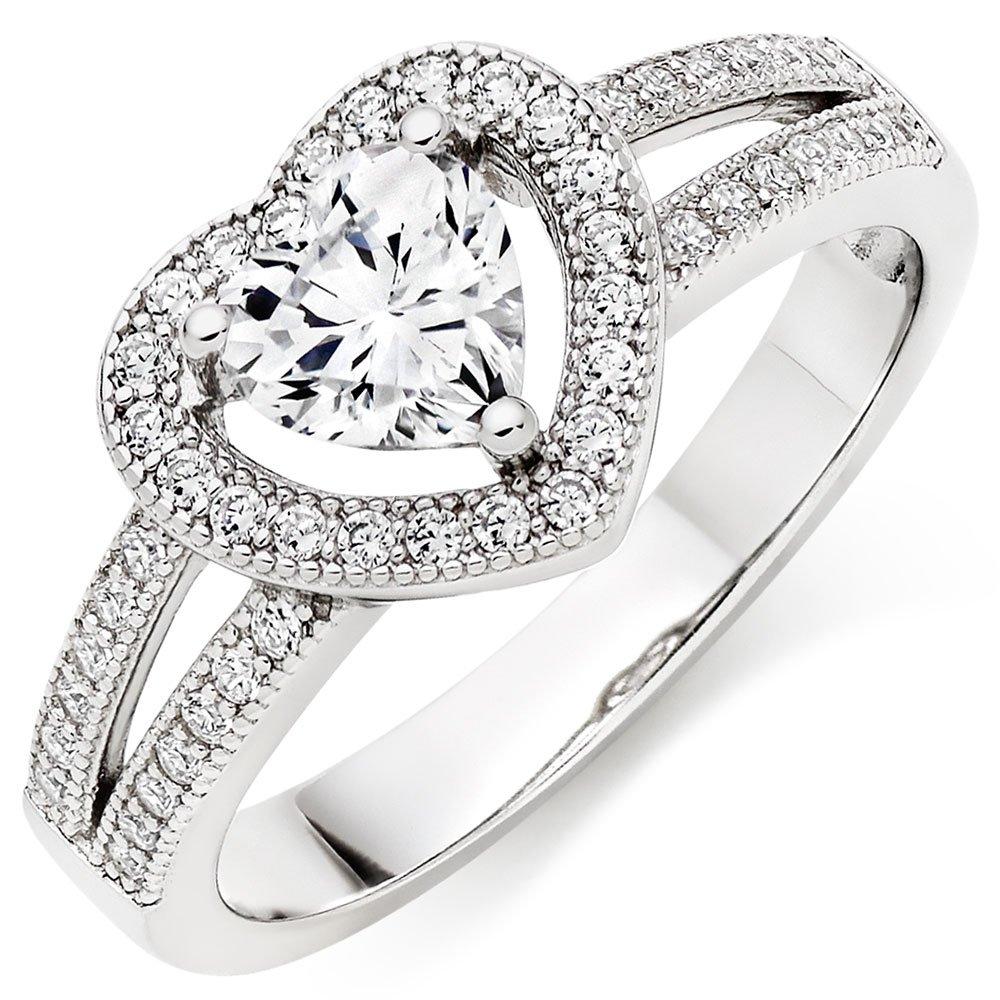 The definition of glamour, this gorgeous silver cubic zirconia heart ring guarantees to make you fall in love. The beautiful and feminine design showcases the prettiest heart-shaped cubic zirconia stone that’s enhanced by a halo of smaller round stones for maximum sparkle, all set on a polished silver band enhanced by even more cubic zirconia that fall down the rings shoulders. Guaranteed to see you stand out from the crowd, this must-have ring will ensure you steal every spotlight.