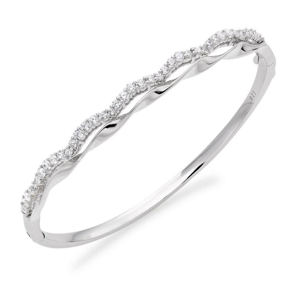 Glisten into the night with this simply stunning Silver Split Bangle, swirling with dazzling cubic zirconia crystals ensure you stand out from the crowd.
